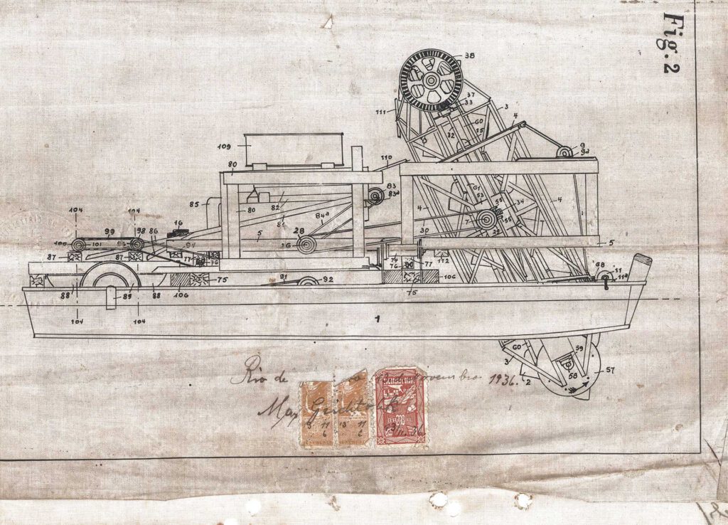Patente de invenção da nossa primeira draga flutuante registrado em 13 de novembro de 1936. Veja a nossa time line completa!